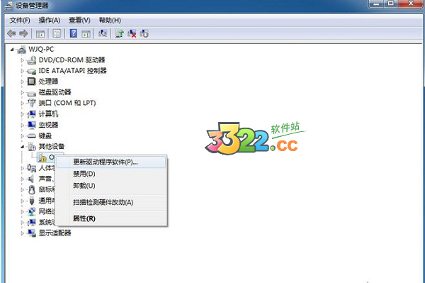 3.點(diǎn)擊其他設(shè)備,會(huì)出現(xiàn)一個(gè)名叫“One”的設(shè)備,當(dāng)時(shí)這個(gè)設(shè)備是感嘆號(hào),也就是暫時(shí)不能使用,這時(shí)候鼠標(biāo)右鍵點(diǎn)擊One,并點(diǎn)擊更新驅(qū)動(dòng)程序軟件