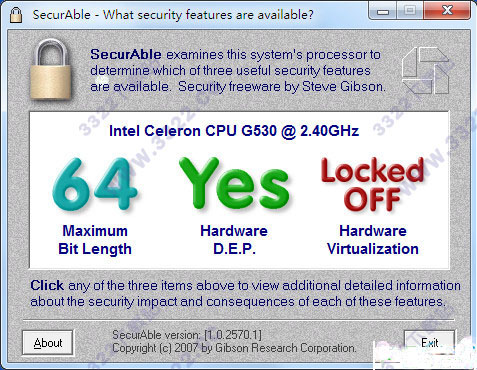 6.SecurAble用以檢測(cè)你CPU是不是支持硬件級(jí)虛似方式,該方式是運(yùn)作Windows7特色功能XPMode的重要前提條件