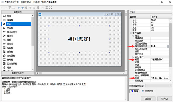 9、修改其“標(biāo)題”屬性為“祖國(guó)您好”,字體屬性可自行按需要修改,如kkx分享的截圖: