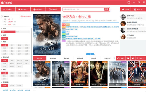 全自動(dòng)通過網(wǎng)上獲得電影的類型、電影導(dǎo)演、出演、介紹、海報(bào)圖片等材料,而且提取影片里的界面做成膠卷預(yù)覽效果;簡單視頻統(tǒng)計(jì)分析控制面板向大家展現(xiàn)視頻數(shù)量、總大小總時(shí)間