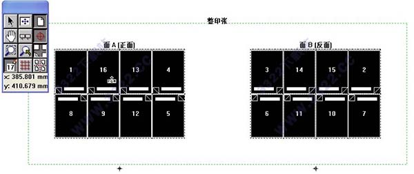2.印張信息中的寬和高需要計(jì)算.這里以285*210mm成品膠訂為例,寬:10(大版邊空)+[2(銑背)+210+3(出血)]*4+10(大版邊空)=880;高:10+(3+285+3)*2+10=602