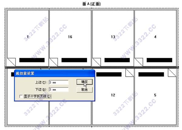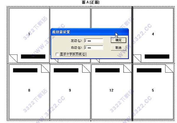 9.按同樣方法設(shè)置好其它邊空(切口\天頭/地腳),然后選取菜單欄上的"模版"___"更改拼版"設(shè)置讓拼版版心在印張中居中.同樣,反面不用設(shè)置.