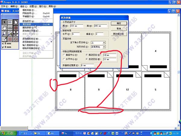 3.從印張邊緣到打孔中心距離:我這里給200,這樣那個(gè)討厭的圓圈就不在印版中了.