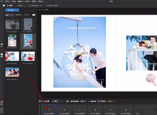 4、提供簡單的設(shè)計過程,加載模板就可以開始拖動圖片制作相冊;