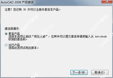 1、程序安裝完成,雙擊桌面上的Autocad2008快捷方式,彈出產(chǎn)品激活界面,勾選“激活產(chǎn)品”,并點擊下一步