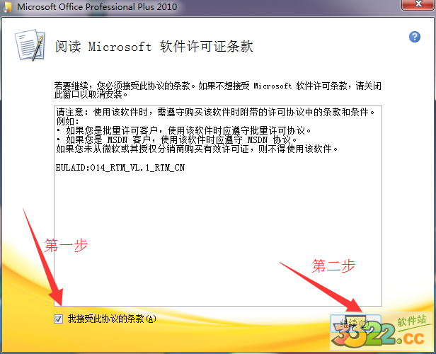2:勾選“我接受此協(xié)議的條款”至于條款的內(nèi)容要不要仔細看,有用戶自行決定,勾選好之后點擊“繼續(xù)”