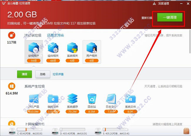4、結(jié)束掃描,點擊“一鍵清理”即可清理電腦上的所有立即文件,如kkx分享的截圖: