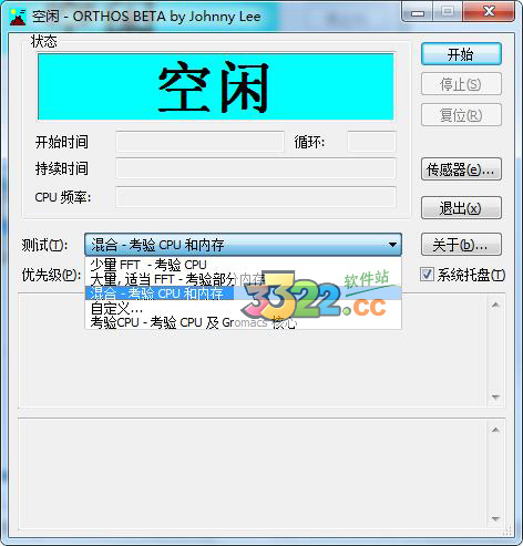 1、這次去掉了選擇CPU0和CPU1的選項,運行一個ORTHOS即可對CPU的兩個核心同時進行測試,絕對達到滿載,測試壓力也更大,也更嚴格