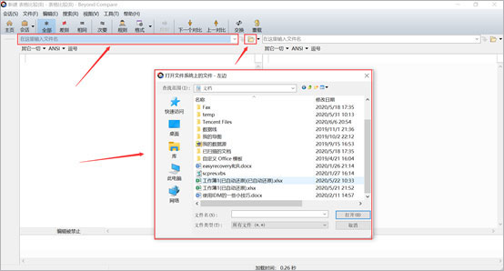 方法二、單擊“瀏覽文件”按鈕,然后打開(kāi)系統(tǒng)文件夾選擇需要比較的表格文件。