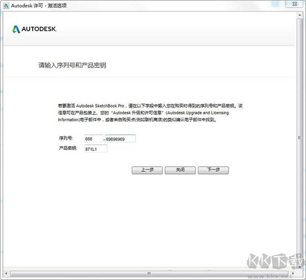 11、將剛剛的序列號和秘鑰輸入進(jìn)去,點擊下一步。