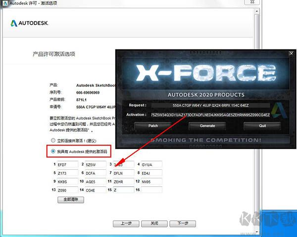 12、選擇激活方式嗎,選擇我有激活碼,將注冊機(jī)中生成的激活碼復(fù)制到激活界面,點擊下一步即可激活。