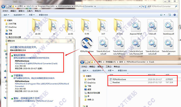 7、安裝完成后打開安裝目錄,然后將數(shù)據(jù)包中crack文件夾下提供的破解文件“PDFtoWord.exe”復(fù)制到安裝目錄下,再按提示點(diǎn)擊復(fù)制和替換,安裝破解完成(切換中文界面方法:點(diǎn)擊tools——language——Chinese)