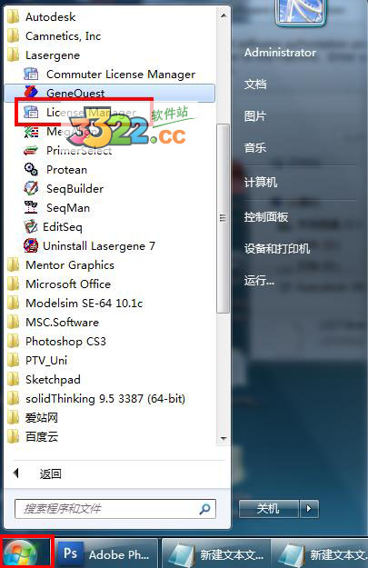 一、“開始”菜單(菜單在桌面左下角,圖案為Windows官方標(biāo)志)-所有程序-“Lasergene”文件夾- 雙擊打開“License Manager”