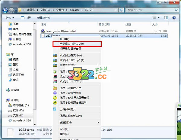 七、鼠標(biāo)右鍵點(diǎn)擊安裝包內(nèi)的“LG7.license”文件,點(diǎn)擊“用記事本打開該文件”