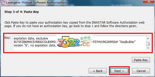 八、將文件中的注冊信息全部復(fù)制,并將其粘貼到“key”欄中,同時(shí)點(diǎn)擊“Next”