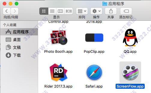 3、之后我們便可以在MacOS自帶的文件管理器的“應(yīng)用程序”欄目中找到我們的ScreenFlow Mac 破解版,找到它之后我們就可以雙擊打開將它運(yùn)行了