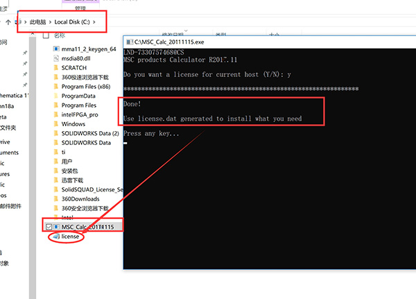 3、然后在MAGNiTUDE文件夾中找到MSC_Calc_20180531.exe移動到c盤根目錄,再次運行點y,生成激活文件license.dat