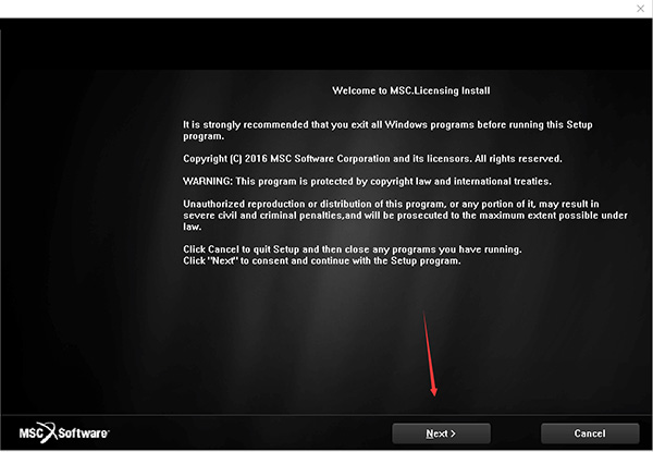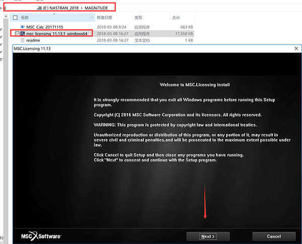 4、接著我們安裝激活服務(wù)器,點補丁文件夾內(nèi)的MSC_licensing_11.3.1_windows 64.exe,點next繼續(xù)