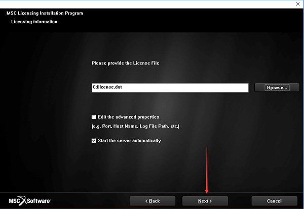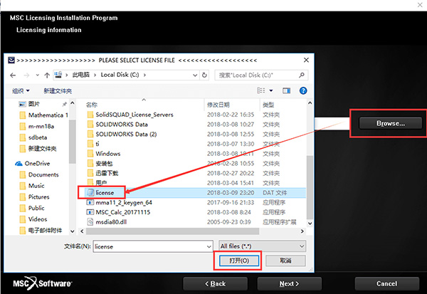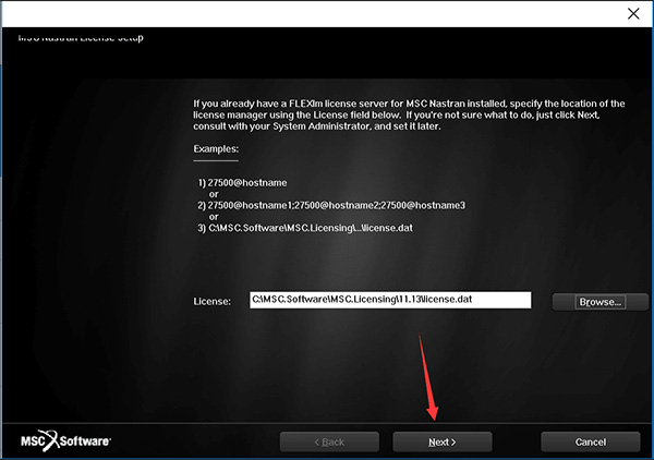 19、彈出授權(quán)激活界面,點擊Borwse...,選擇C:\MSC.Software\MSC.Licensing\11.13目錄下的“license.dat"文件