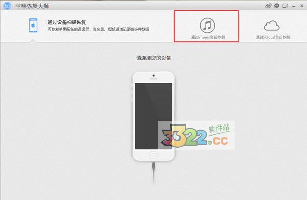 第一步,打開蘋果恢復(fù)大師,點(diǎn)擊【通過 iTunes 備份恢復(fù)】。