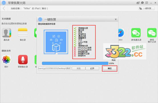 4、持把iOS設(shè)備的掃描出來(lái)的待恢復(fù)數(shù)據(jù)恢復(fù)到計(jì)算機(jī)