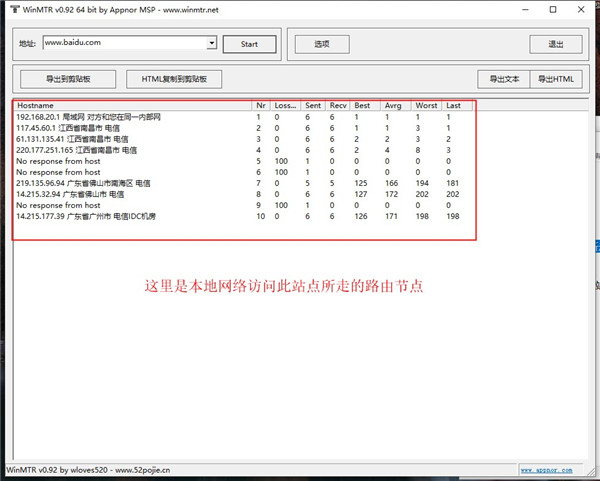 3、如下圖可以,可以看到本地網(wǎng)絡(luò)訪問此站點(diǎn)所走的路由節(jié)點(diǎn);