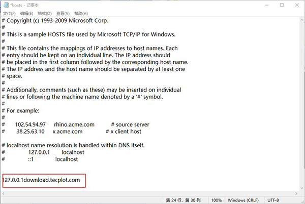 將127.0.0.1download.tecplot.com添加進(jìn)去并保存退出。