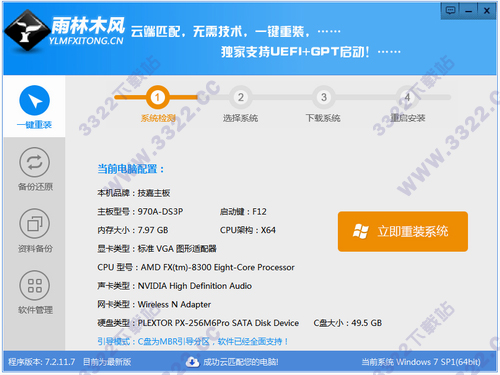 3、快速重裝,健康重現,系統若感染病毒木馬或系統慢卡,雨林木風一鍵重裝系統軟件幫你快速恢復到健康狀態(tài),快速擺脫病毒的困擾。