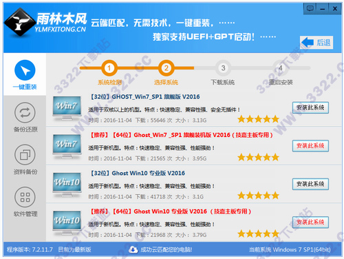 雨林木風一鍵重裝系統工具是一款簡單實用而且免費的系統重裝軟件,相信大家到知道系統重裝的重要性,支持MBR,GPT/UEFI分區(qū),支持一鍵重裝的系統有XP、win7、Win8.1、Win10系統、win11系統!只要4個步驟,輕松搞定電腦重裝系統!當您的電腦中毒了,文件損壞不能繼續(xù)使用、系統升級、更換新系統等都可以通過重裝系統解決,這款雨林木風一鍵重裝系統就是能夠幫助用戶實現一鍵重裝的軟件,不需要任何專業(yè)技術,按提示選擇你所需要安裝的系統,然后耐心等待即可讓你的計算機“重見光面”!