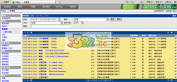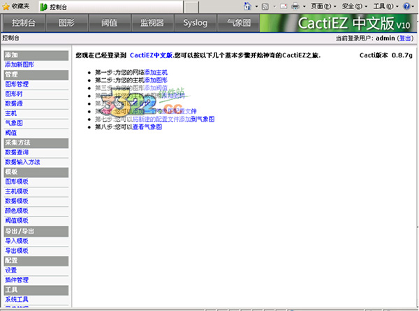 cactiez是通過snmpget獲取數(shù)據(jù),使用RRDtool繪制圖形,您不需要了解RRDtool的復雜參數(shù)。它提供了非常強大的數(shù)據(jù)和用戶管理功能,可以指定每個用戶可以查看樹結構、host和任何圖片,也可以與LDAP結合進行用戶驗證,還可以添加自己的模板,功能非常強大和完善。界面很友好。