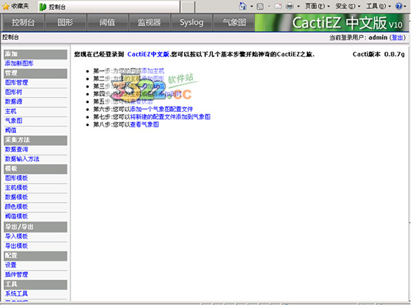 Cactiez是什么?kkx小編給大家分享的Cactiez是一款轉為用戶提供Cacti中文解決方案的軟件,Cactiez中文版整合了Spine,RRDTool和美化字體,集成了Thold,Monitor,Syslog等模板,在網(wǎng)絡監(jiān)控方面,支持多種硬盤的控制器和陣列卡。cactiez中文版基于CentOS6,支持更多的硬盤和陣列卡,啟動速度更快,系統(tǒng)更穩(wěn)定,還支持中文頁面和中文圖形,可以讓我們更方便的進行使用!