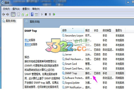4、安裝完成后,點擊開始-運行,輸入services.msc 確定,打開服務管理,啟動snmp。