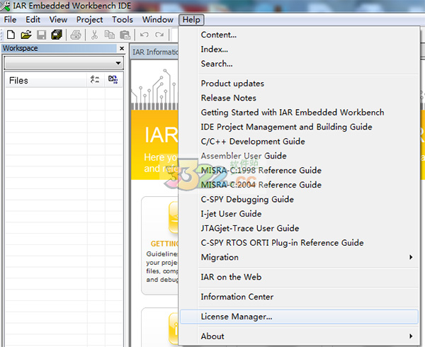 2、打開剛安裝的IAR FOR ARM,然后再Help選項(xiàng)中選倒數(shù)第二個(gè)。