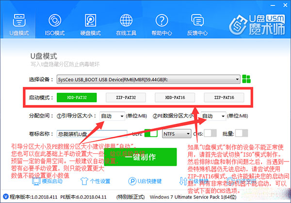 2、支持UD、ISO、UDM、U+、本地硬盤(pán)模式。其中“優(yōu)盤(pán)模式”分區(qū)方式有兩種,方式1占用更小體積能兼容絕大多數(shù)機(jī)器,方式2占用空間大兼容性更強(qiáng)。"優(yōu)盤(pán)模式"需要優(yōu)盤(pán)支持多分區(qū),如果優(yōu)盤(pán)不能多分區(qū)則可能會(huì)制作失敗,此時(shí)請(qǐng)轉(zhuǎn)投"ISO模式"。
