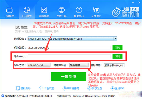 3、"ISO模式"可以單獨(dú)生成USM的ISO版,方便刻錄光盤(pán)或者量產(chǎn)U盤(pán)使用;也可以一鍵直接寫(xiě)入U(xiǎn)盤(pán)。