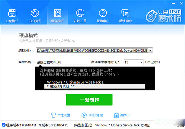 5、"本地硬盤(pán)模式"更方便的使用USM,不需要額外的U盤(pán)或光盤(pán),直接自動(dòng)寫(xiě)入本機(jī)硬盤(pán)方便啟動(dòng)維護(hù)。