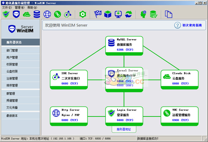 助訊通網(wǎng)絡(luò)服務(wù)器內(nèi)嵌有MySQLServer數(shù)據(jù)庫系統(tǒng),與此同時支持建空外界MySQLServer數(shù)據(jù)庫系統(tǒng),隨時與企業(yè)自身的信息整合!