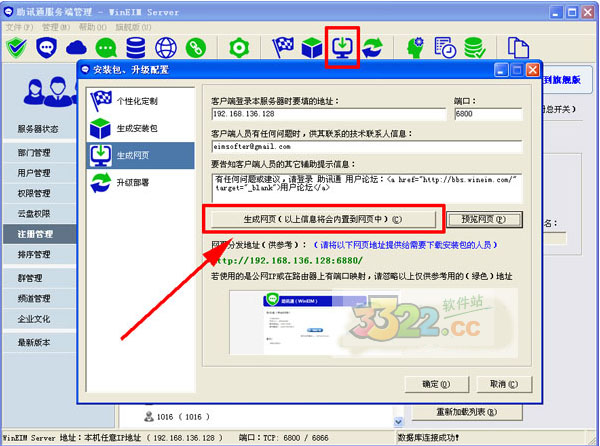 到這一步:服務(wù)端上的部門、帳號工作基本已經(jīng)結(jié)束了,客戶端可以安裝登錄了,這時如果想快速分發(fā)客戶端的安裝包文件給企業(yè)所有員工安裝,可以使用 服務(wù)端 上內(nèi)置的 Web Server,該 web server 可以直接讓用戶通過網(wǎng)頁下載 客戶端安裝包;