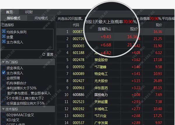 2、高手選股路徑、問財智能選股、資訊、指標全方位出擊;