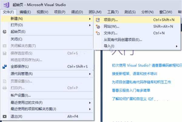 2、左上角按文件——新建——項目,或按ctrl+shift+n。