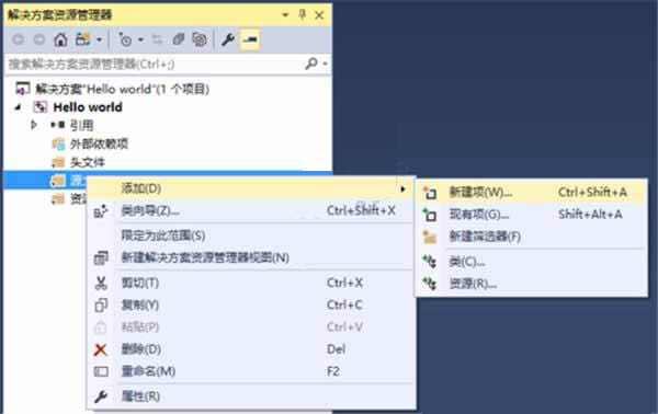 5、右鍵“源文件”,再按添加——新建項。
