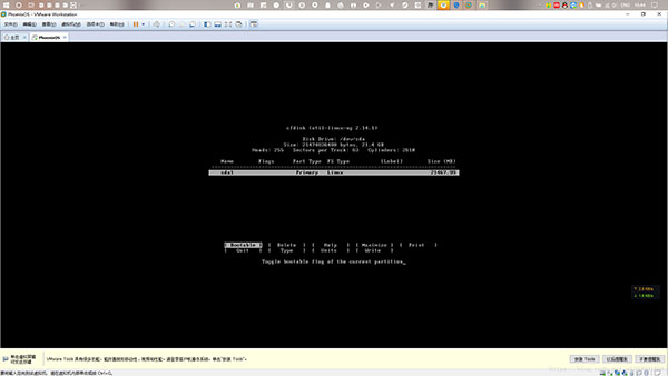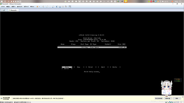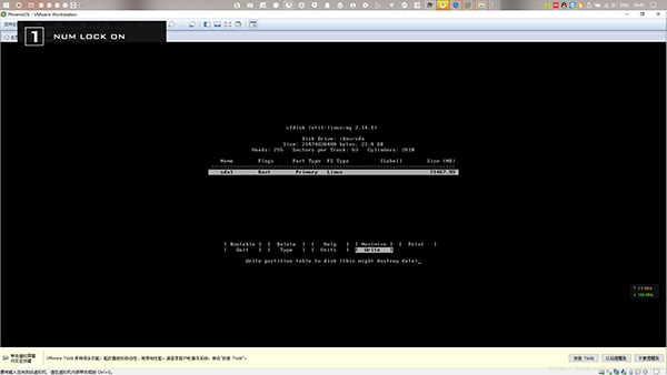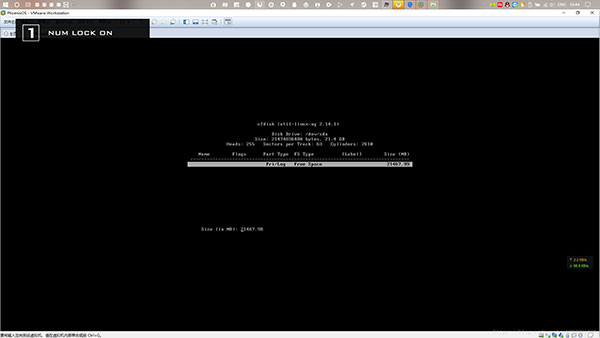 16、接著進(jìn)入磁盤管理器,可以看到現(xiàn)在之佛與一個(gè)大小為21467.99MB的磁盤(因?yàn)槲抑敖o虛擬機(jī)分配空間時(shí)選的是默認(rèn)的20G),按方向右鍵,選擇New,回車,如kkx分享的截圖: