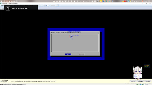 24、選擇磁盤是否格式化,并選擇格式化的磁盤類型,選擇ext4,回車