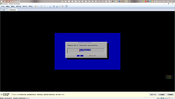 28、等待安裝完成,完成后彈出說安裝成功,選擇Run Phoenix OS,選擇OK ,回車,重啟