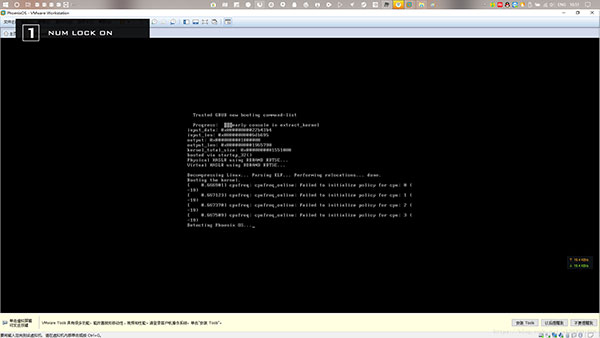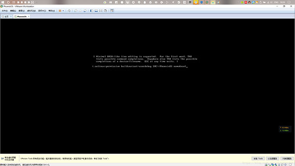 29、目前,我們的PhoenixOS就成功安裝在虛擬機(jī)內(nèi)了,接著會(huì)自動(dòng)重啟,會(huì)卡在這個(gè)界面下。然后手動(dòng)從鍵盤輸入reboot,接著虛擬機(jī)重啟