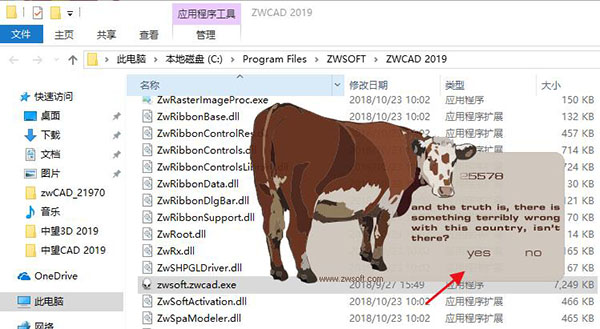 5、隨后我們鼠標(biāo)雙擊破解補丁“zwsoft.zwcad.professional.v2019.25578-ismail.exe”運行,點擊“yes”對原程序打入破解補?。ㄐ枰⒁獾氖牵浩平庋a丁使用一次不一定成功,可以多試幾次,直至破解完成)