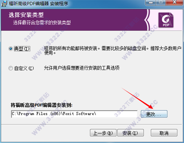 5、安裝類(lèi)型選擇典型,點(diǎn)擊更改可選擇其他安裝路徑