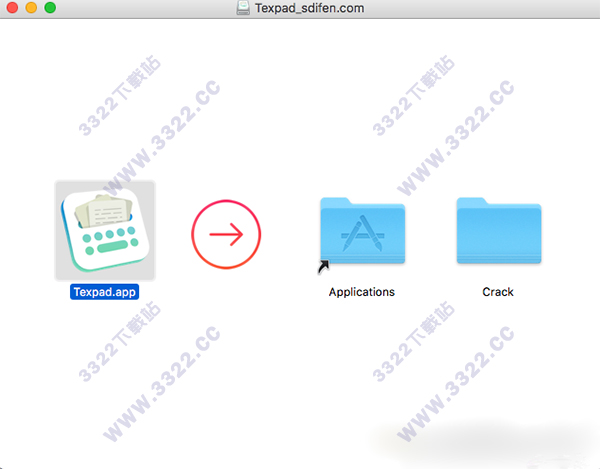1、安裝完成之后,我們將“Texpad 1.7.40.dmg”包里的“Crack”文件夾里面的兩個(gè)程序全部都拿出來
