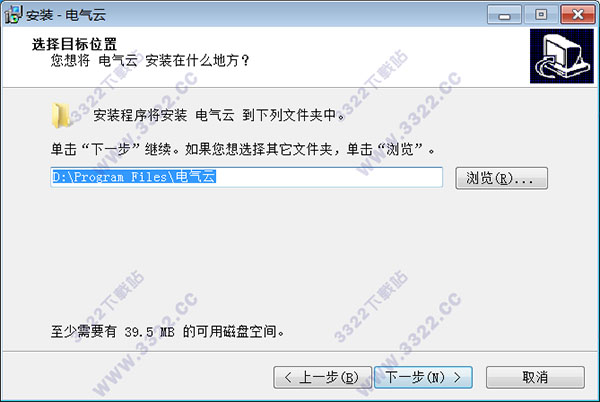 3、安裝電氣云軟件位置目錄放置d磁盤,修改點(diǎn)擊瀏覽按鈕,下一步