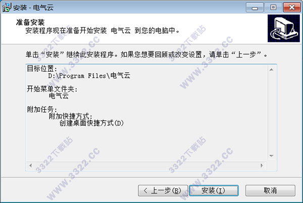 6、開始電氣云程序安裝,點(diǎn)擊安裝按鈕